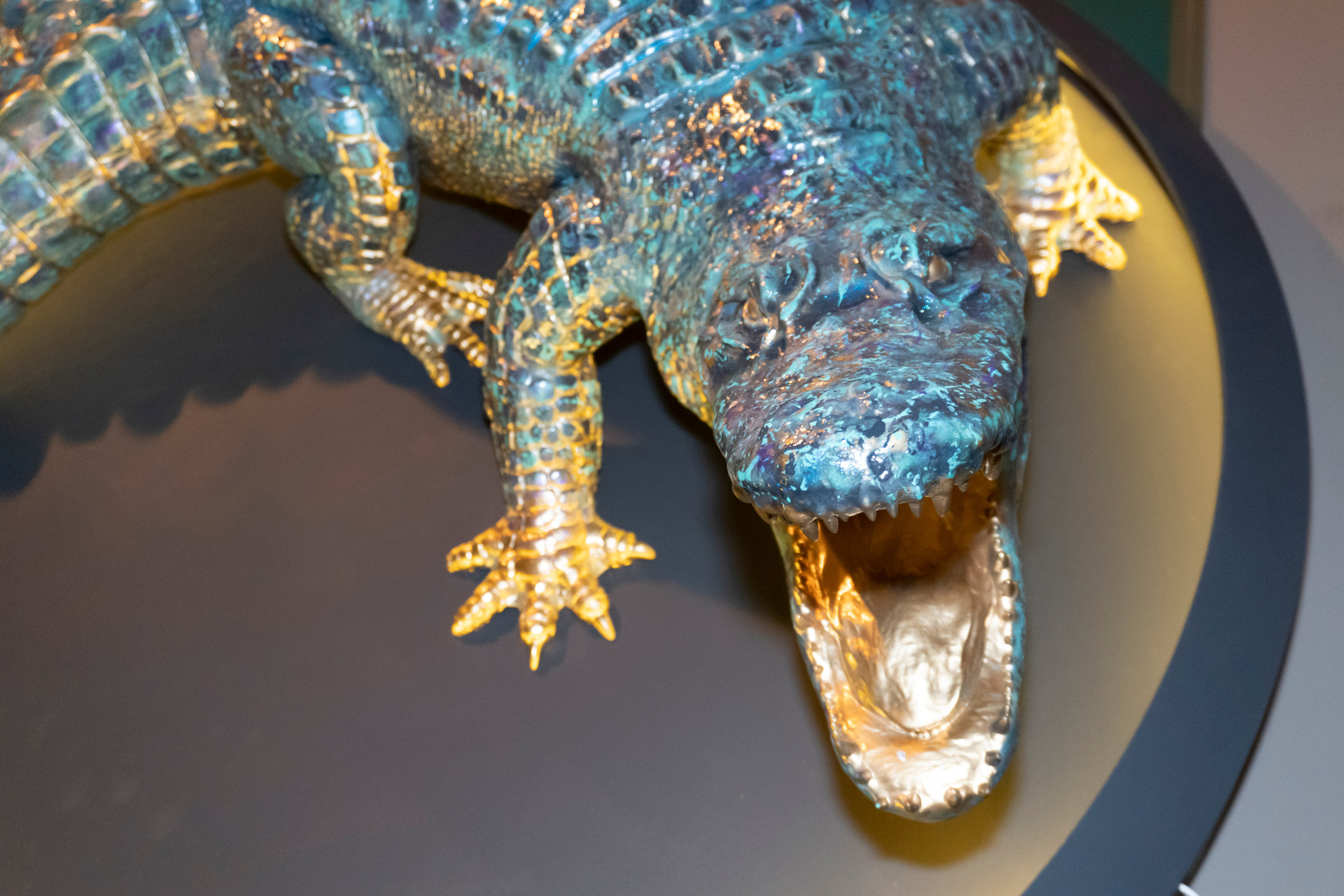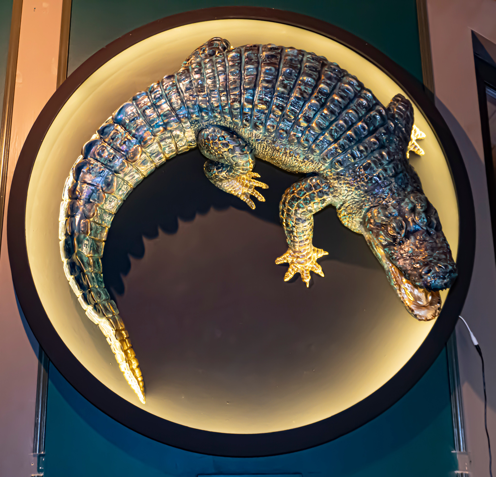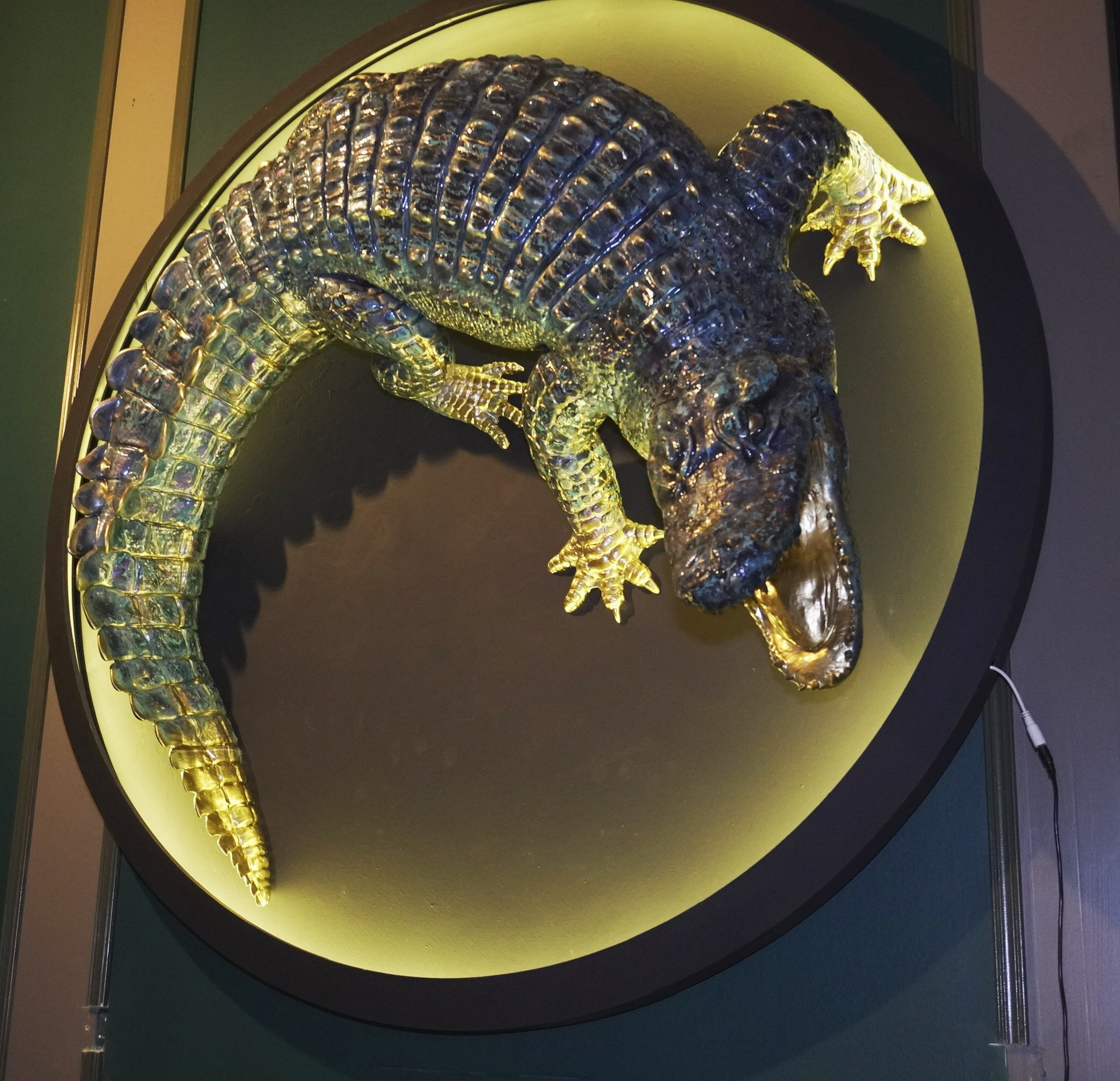 Скульптурное панно с подсветкой «Аллигатор», 3d печать, акрил, МДФ. диаметр 130 см.