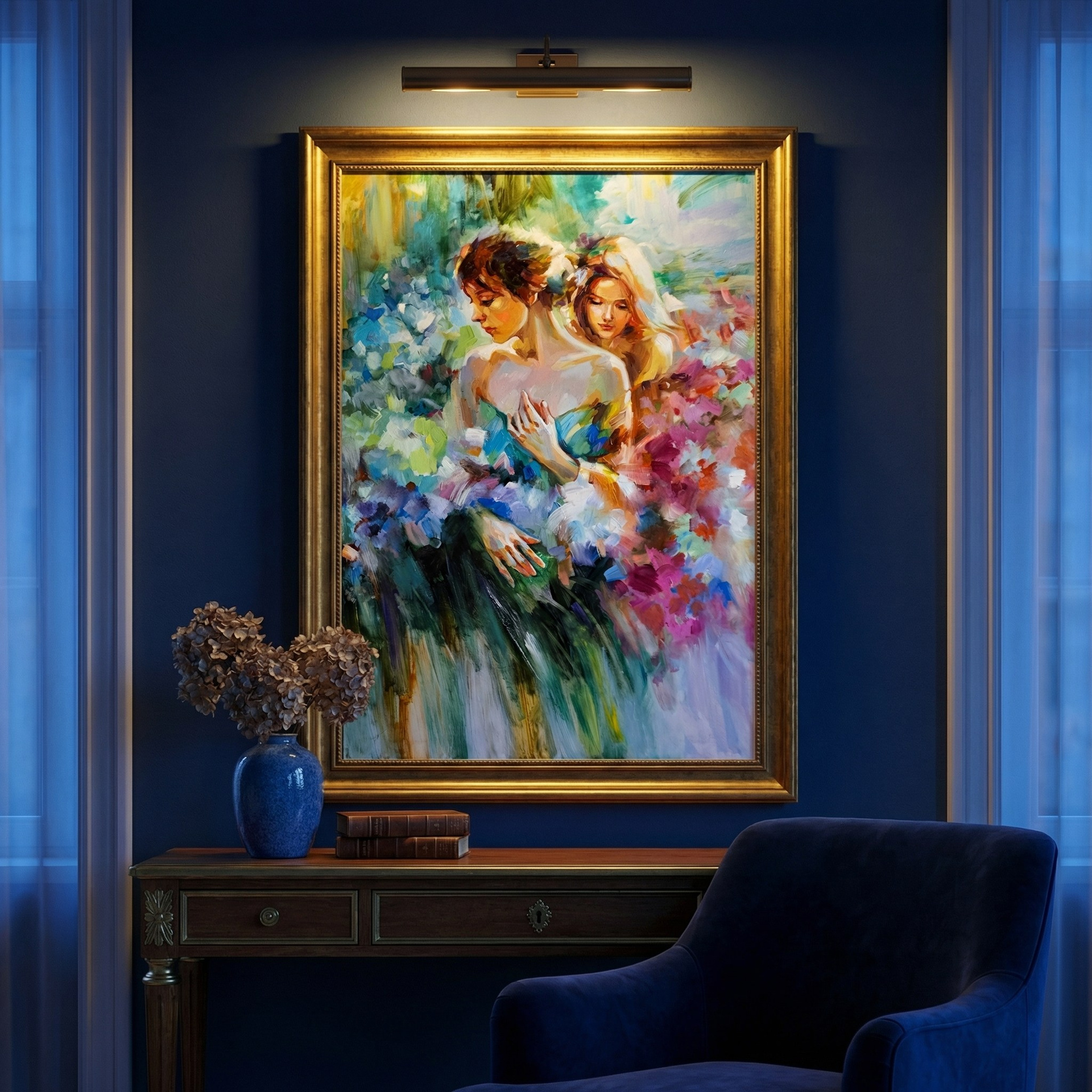 «Эфирный сад» — это метафора внутреннего мира, где каждый из нас взращивает свои воспоминания, надежды и печали. Подобно растениям, они переплетаются, создавая уникальный, постоянно меняющийся ландшафт души. Картина ставит перед зрителем глубокий вопрос: где заканчивается наше «я» и начинается мир вокруг? Возможно, мы и есть этот сад — живой, дышащий, состоящий из бесчисленных лепестков-моментов, которые и формируют нас.