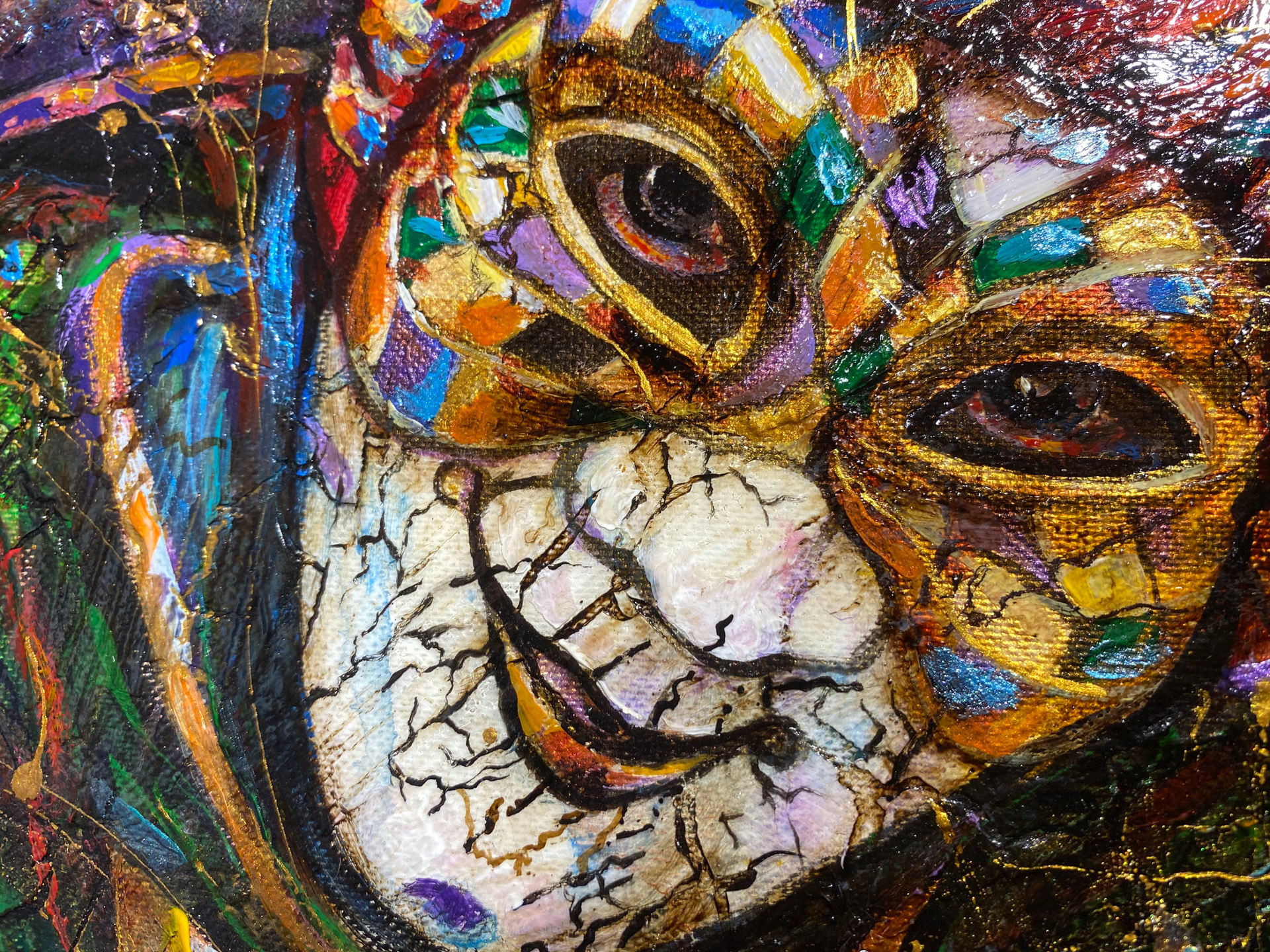 Взгляд арлекина, отстранённый и мудрый, словно говорит: «Всё — иллюзия, но в самой иллюзии заложен смысл». Яркие краски, подобно вспышкам вдохновения, разбивают повседневность и открывают двери в мистический мир, где любое мгновение может обернуться чудом.